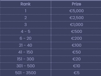 Prize pool: €5,000 in real CASH prizes