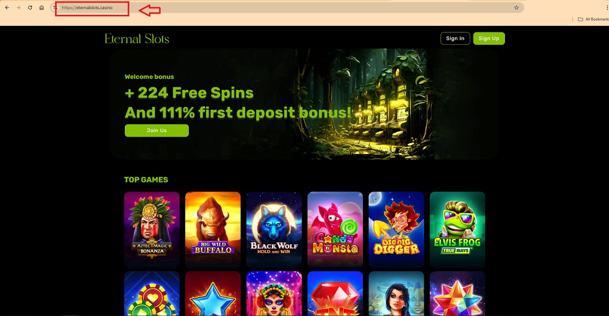 - A user lands on eternalslots.casino