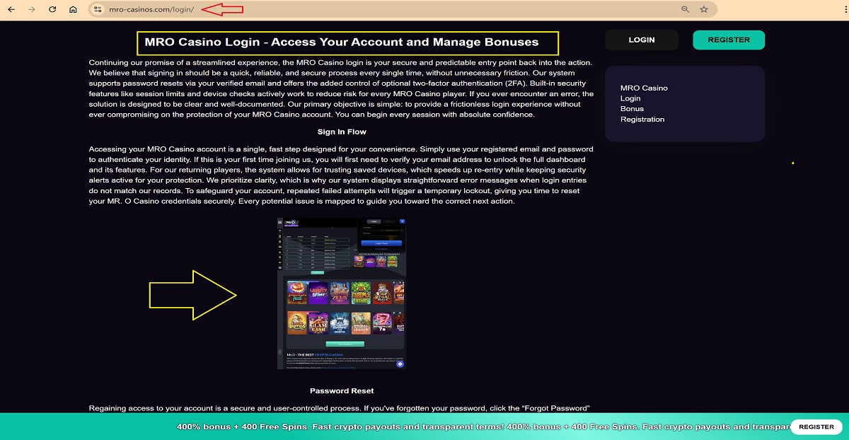 - Includes a screenshot from the official MrO Casino site