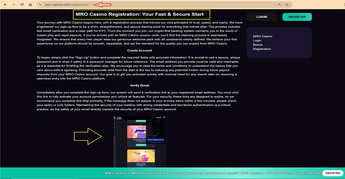 - Apresenta-se como um ponto de entrada para a criação de conta no MrO Casino.