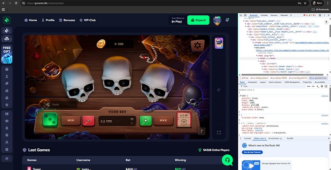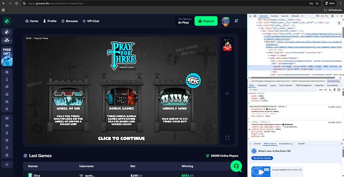 Our investigation revealed that this casino offers fake Pragmatic Play, Hacksaw Gaming, BGAMING, Evoplay, and 1win.