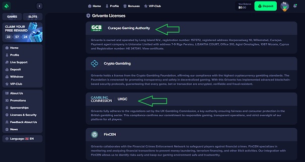 Despite their claims, Grivanto does not hold a UK Gambling Commission license. The information provided on their website is misleading, as they are not authorized or regulated by the UK Gambling Commission.