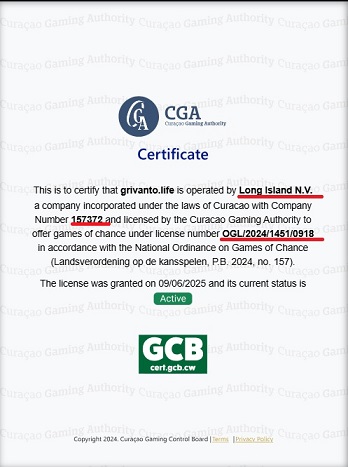 Apesar das suas alegações, a Grivanto não possui uma licença da Comissão de Jogos de Azar do Reino Unido. As informações fornecidas no seu website são enganosas, uma vez que a empresa não é autorizada ou regulada pela Comissão de Jogos de Azar do Reino Unido.