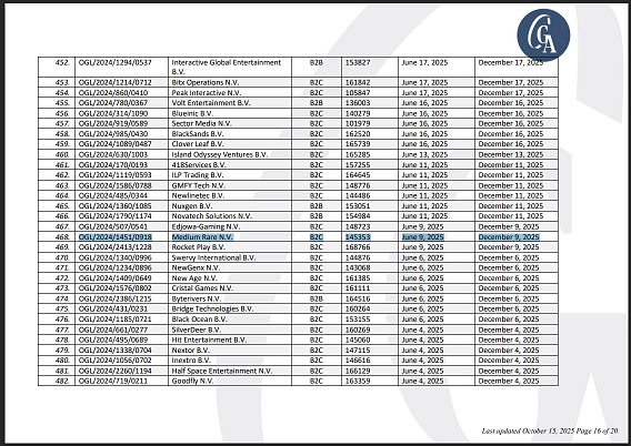 However, license number OGL/2024/1451/0918 actually belongs to Medium Rare N.V., company registration number 14535.
