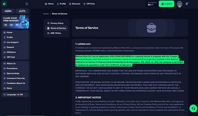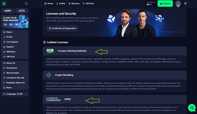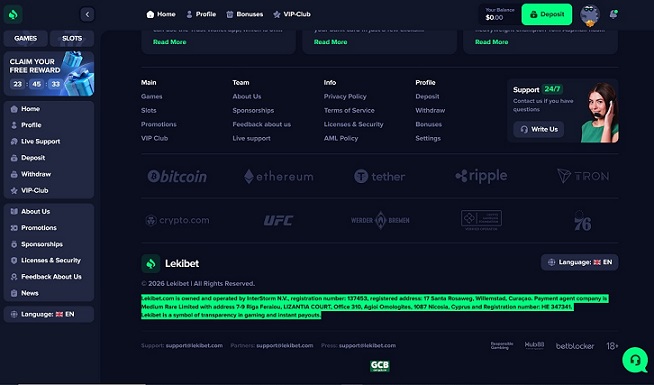 ➡️ Conclusion: Lekibet.com Casino is not licensed by either the Curaçao Gaming Authority or the UK Gambling Commission and provides inconsistent ownership disclosures.
