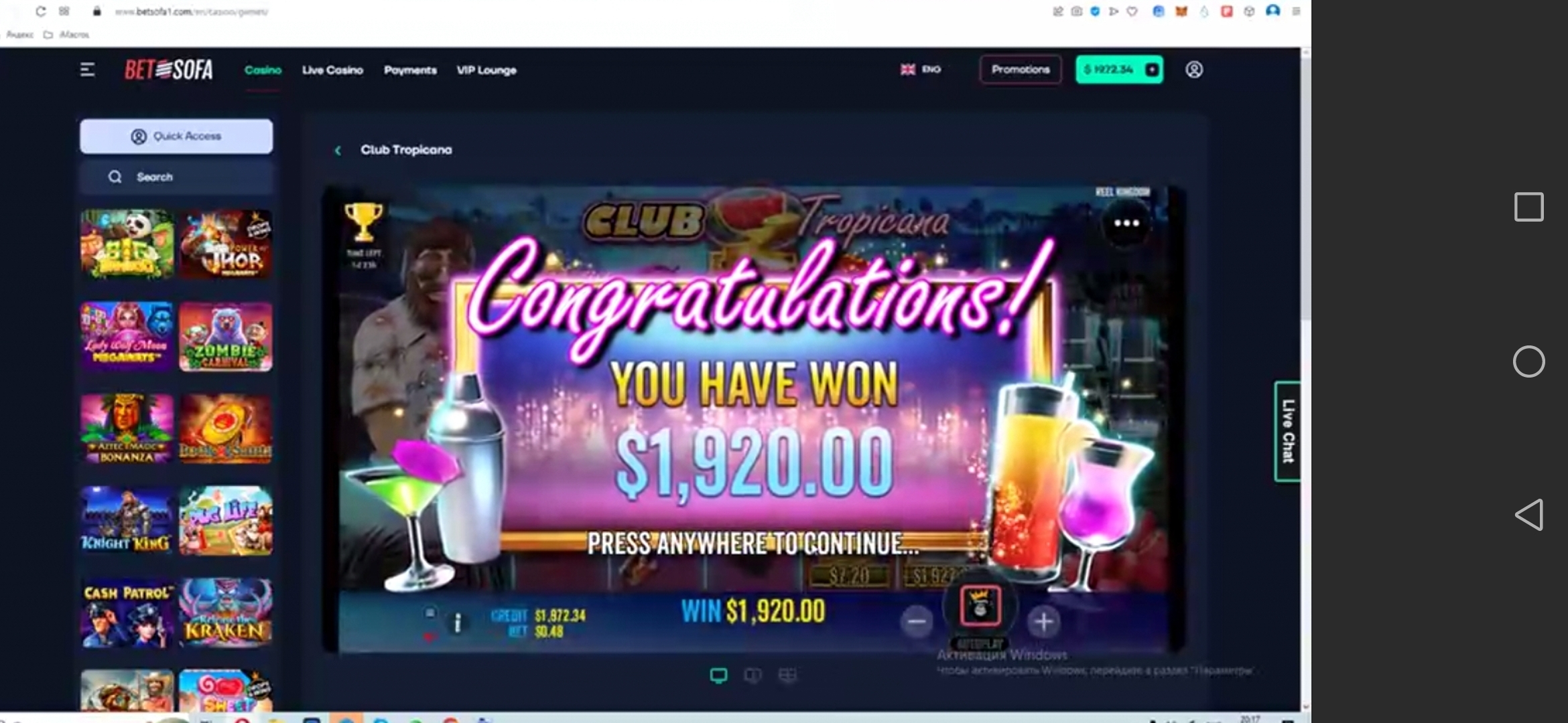 Aqui está minha última vitória no Casino Rewards Casinos UK Casino Club. Decidi experimentar um dos seus jogos "da moda" — normalmente não jogo esses jogos, pois não penso muito no que está na moda, etc., pois tudo depende do algoritmo do jogo. Com 2 giros em uma aposta de $5, ganhei um dos jackpots — $5.000.