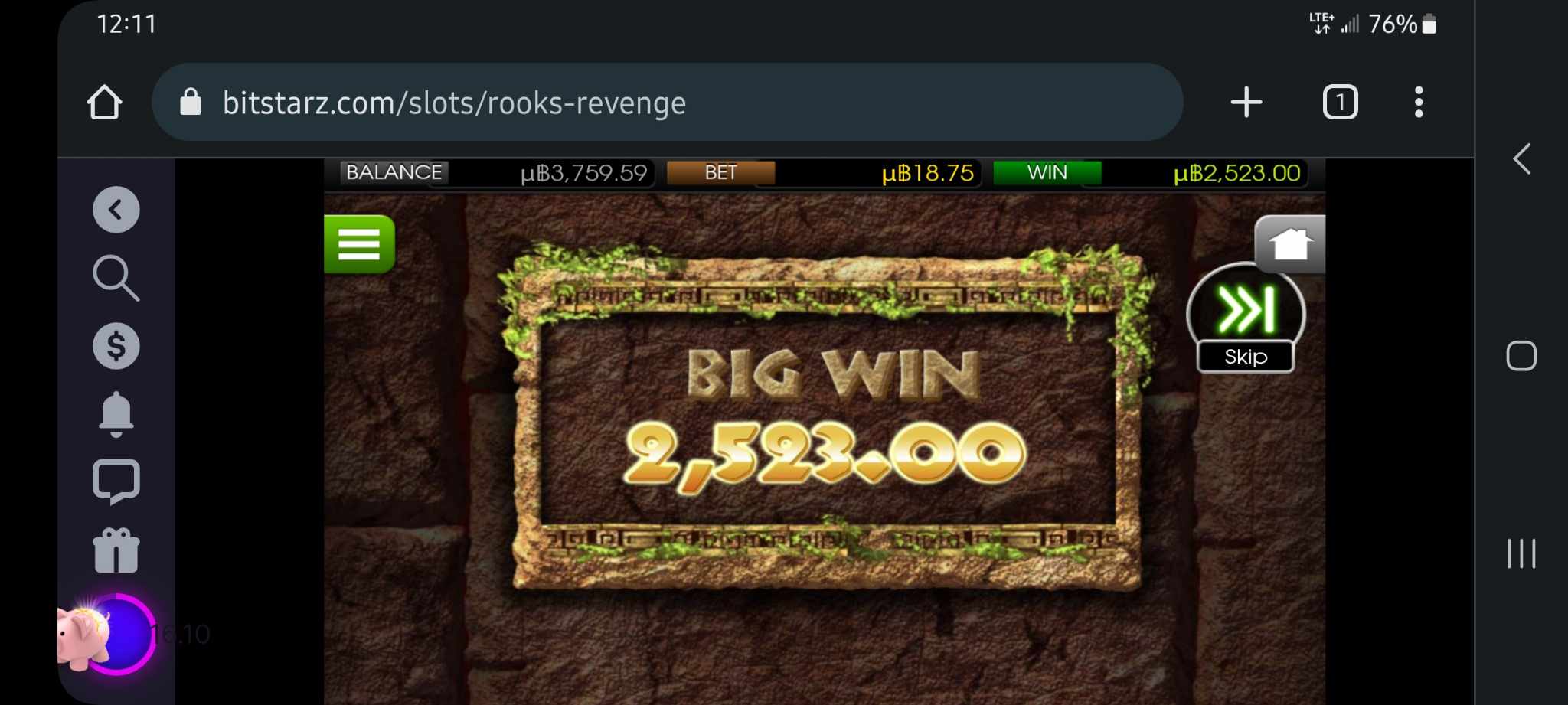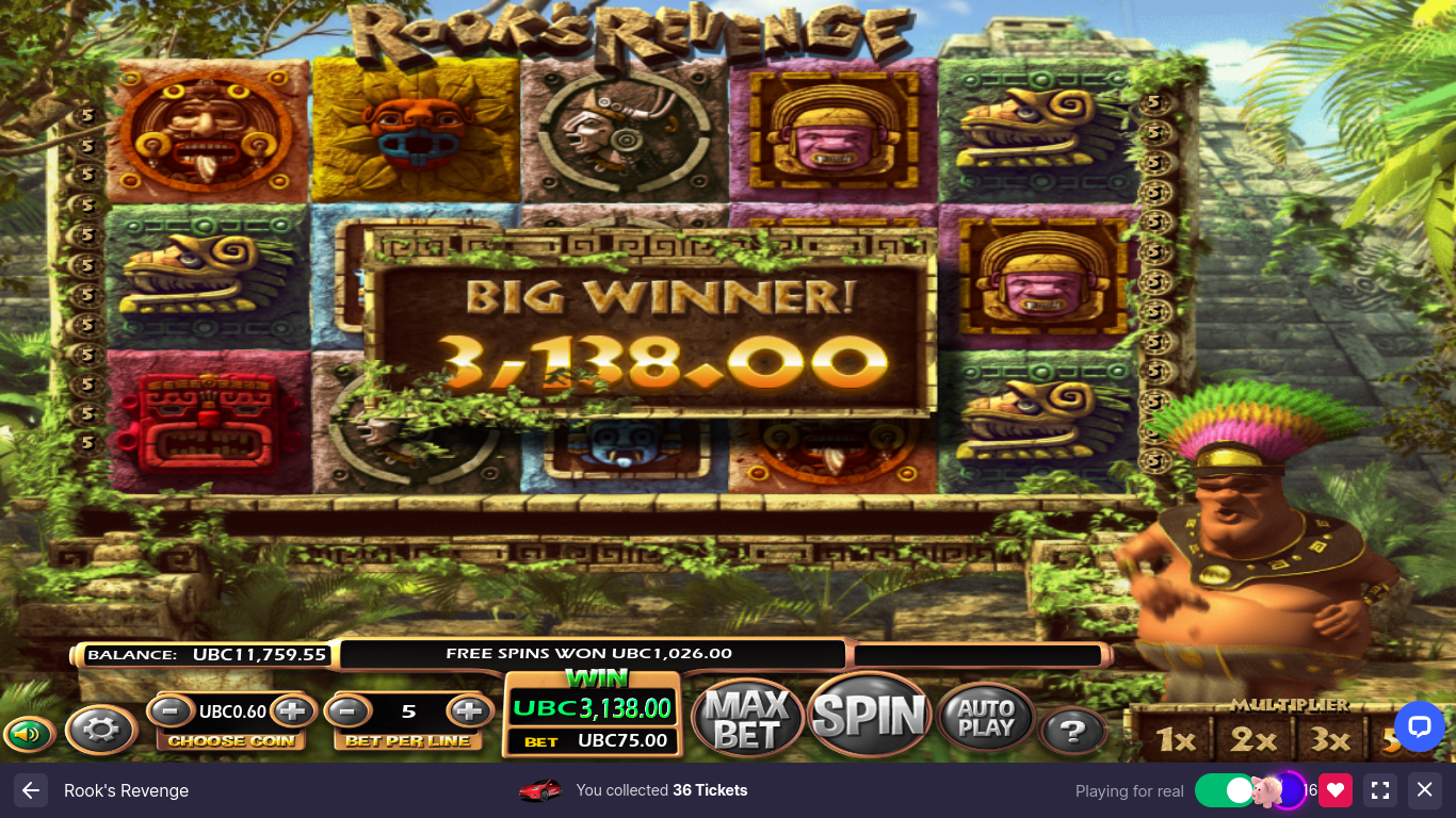e em rooks estava fazendo 18,75 ubtc (75 centavos) giros e acertou o bônus e ganhou 2532 ubtc (99$CAD) -