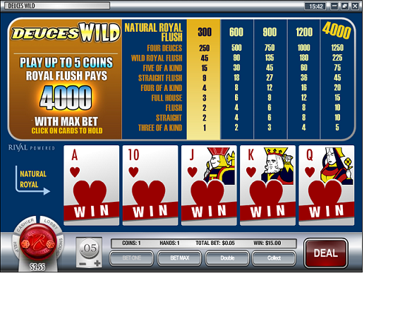 i usually play the 5c poker but i was getting good wins (lots of flushed, full houses and 4 of a kinds) so i moved up bets and when i was still making money on 50c bets i thought i would give $1 bets a go