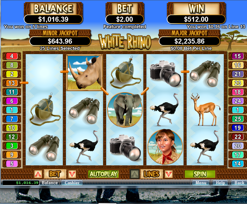 De US$ 1.500 para US$ 738 quando White Rino reativou as rodadas grátis rino 4 vezes em US$ 1,75 por US$ 450.