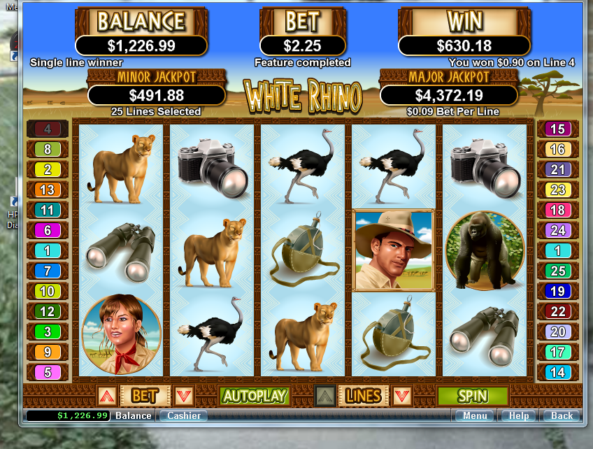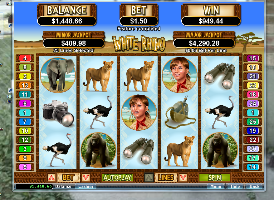 Got White Rino to retrigger 5 times. This is a picture of the 4th retrigger. I only made this deposit because the football game here is blacked out so I am playing while listening to the game on the radio.