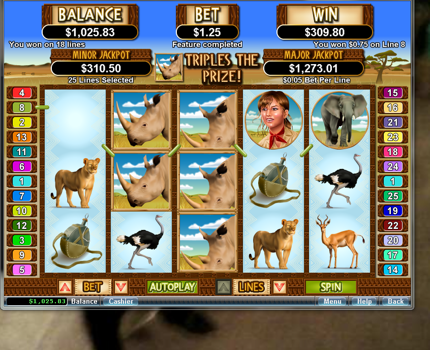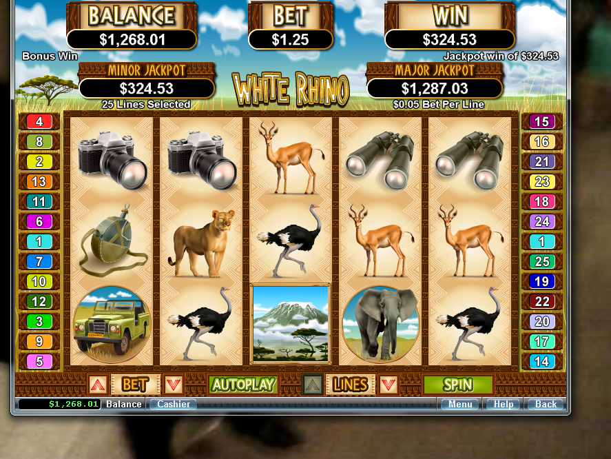 Ela cai $ 160, então 5 scatters aparecem no rino branco para um bônus total de pouco mais de $ 300
