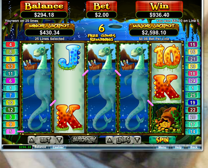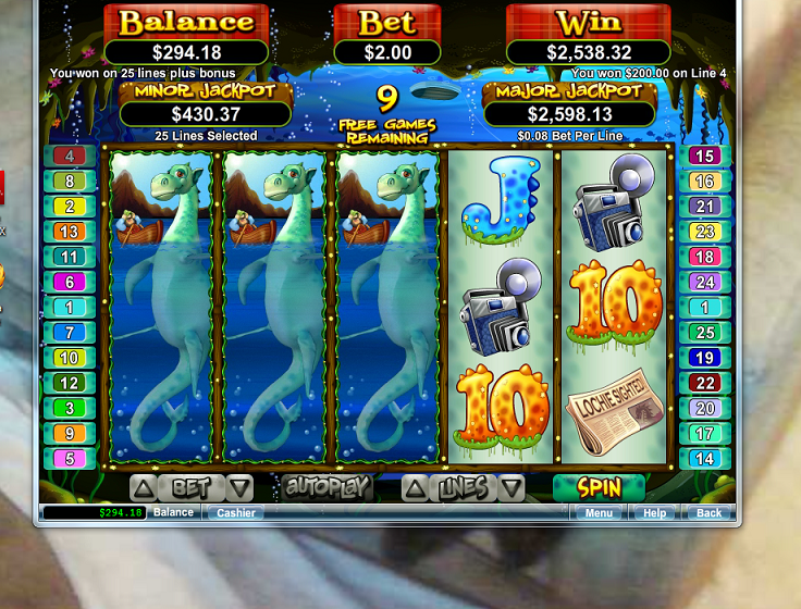 Com a ajuda do Froggy, aqui está, espero, meu primeiro dos dois giros bônus do Loch Nest