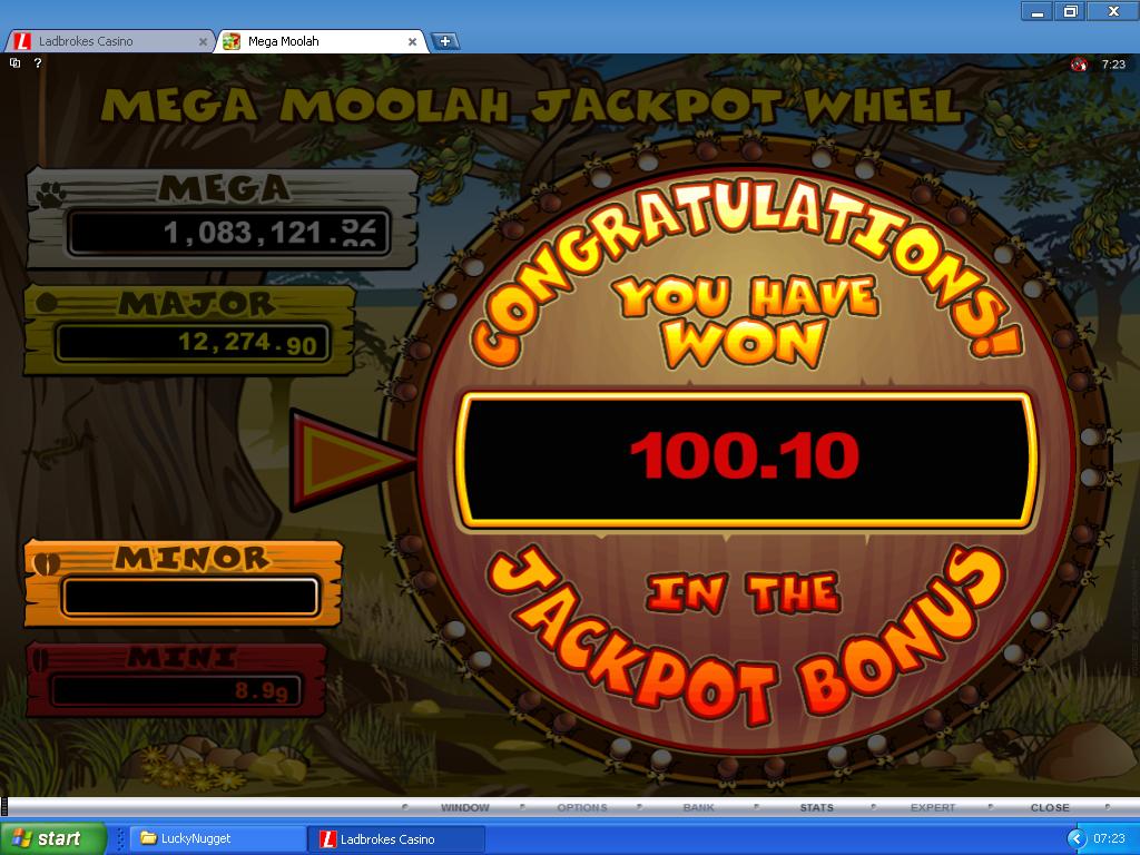 Uau!! Excelente! Meu 4º menor prêmio no Mega Moolah e o 2º menor na Ladbrokes!! -