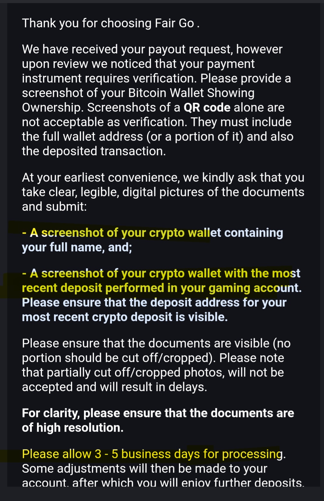 Additionally, it would be helpful if you could share screenshots of your communication with the casino support, particularly where they informed you that you would be eligible for cashback, as well as their response when you mentioned that you were not eligible.