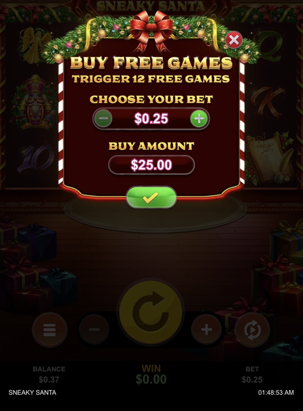 So games of this type you can change the bonus buy amount with the button to increase or decrease the bet amount for the normal spins and vice versa. In fact, sneaky santa, Sweet16 Blast, and one other, i believe is a Buffalo Mania variant, the buttons are locked together so you if were to change one you change the other.