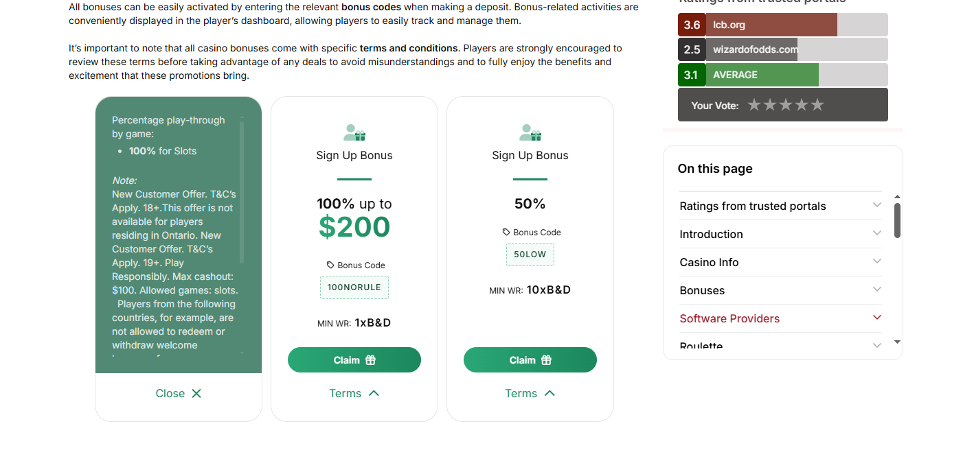 Registrei-me e reivindiquei o chip grátis de US$ 100 (WELCHIP100) . De acordo com os termos de bônus anunciados publicamente — inclusive aqui no LCB e até no Wizard of Odds — o saque máximo era de US$ 100. Os Termos e Condições gerais do seu site mencionam apenas um limite máximo de saque de US$ 50 para giros grátis, não para fichas grátis.