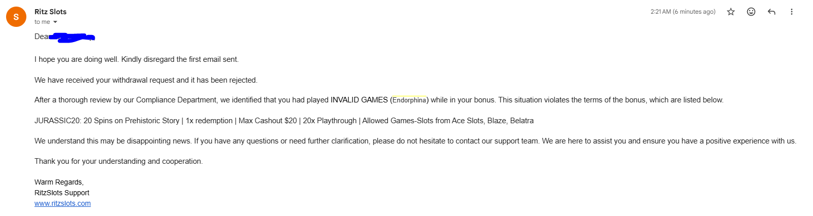 Blacklist RitzSlots. Blacklist all the other sites that have like a 1.5 rating that you have on the reviews "waited months for payouts" etc etc. Promoting these sites is damaging to your forum and community. Not everyone goes through and reads through all of the reviews. They see the people who post comments, a lot of these seemingly bots, saying they had a good experience etc, and then they get scammed.