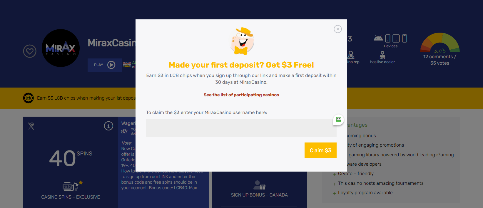 i joined 2 casinos through this site and both had a $3.00 chip lcb bonus
