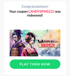 222 FREESPINSOn Shogun Princess Quest CODE: CANDYSPINS222 222 RODADAS GRÁTISEm Shogun Princess Quest CÓDIGO: CANDYSPINS222