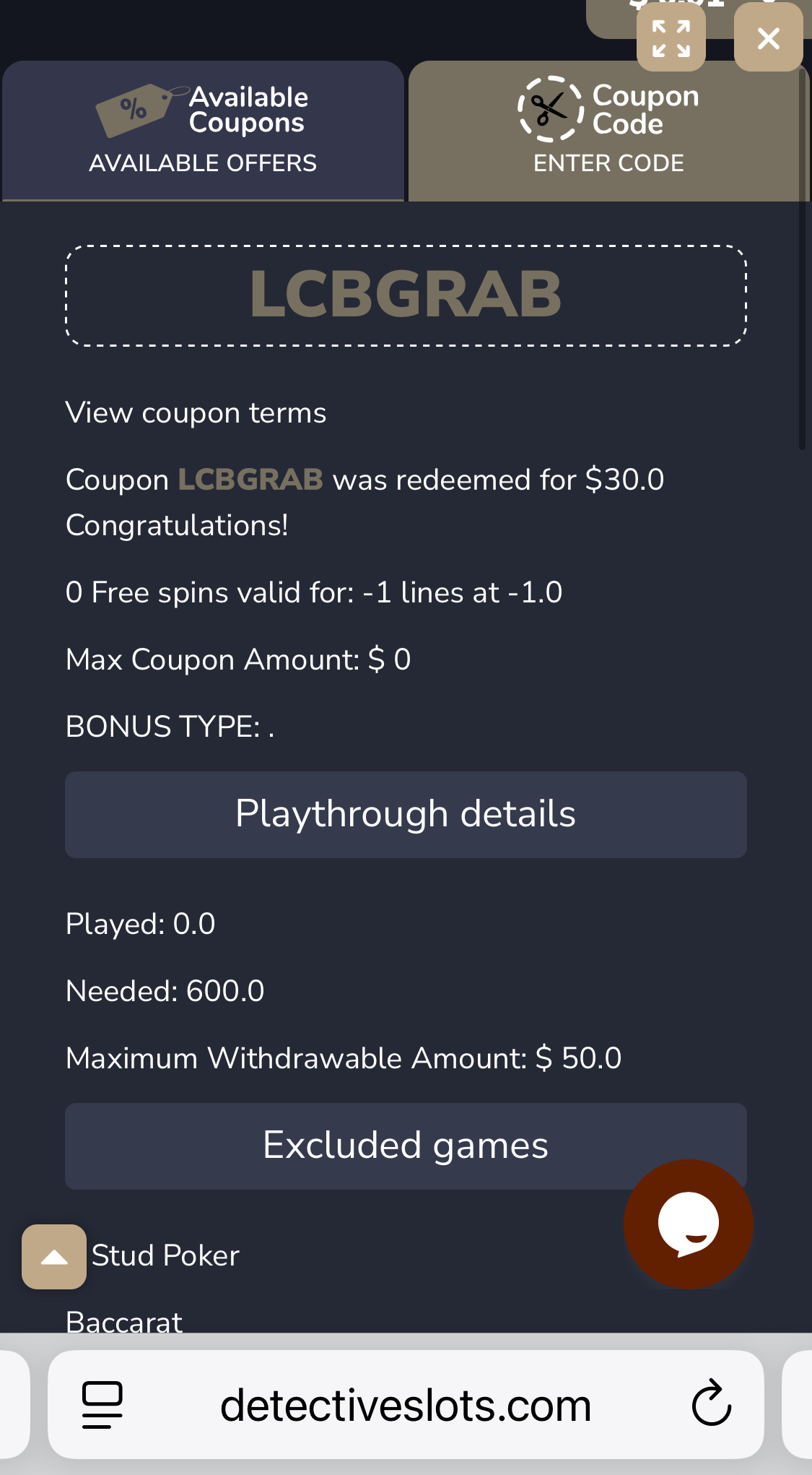 Dis you find any codes for detective ? If so please share. And go to cashier and coupon tab.. enter you code