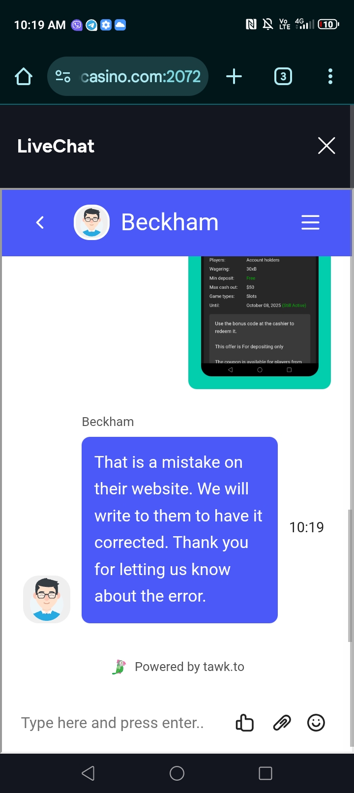 Thanks for bringing this to our attention, we will contact the casino representative.