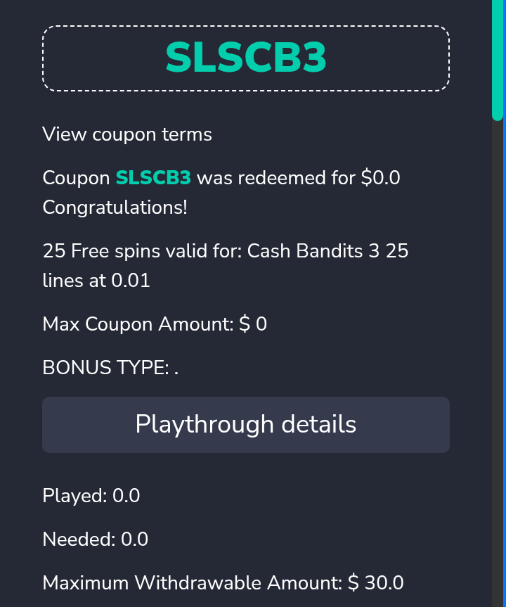 Any new codes I have 1 more bonus I can use before I need to make a deposit