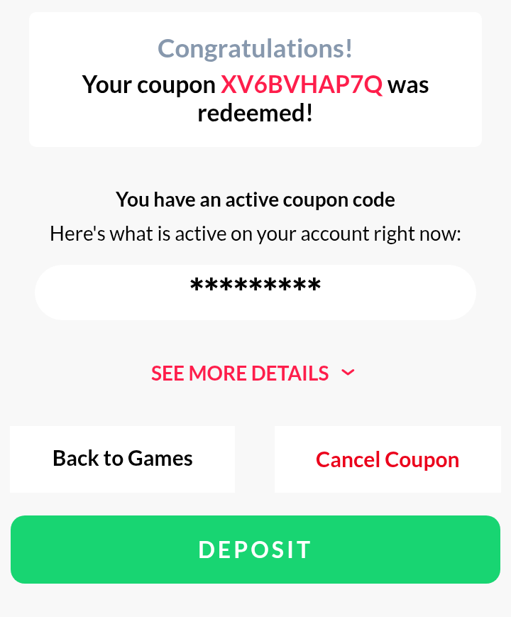 ** Se sua última transação foi um bônus sem depósito, certifique-se de fazer um depósito antes de reivindicar este ou seus ganhos serão anulados e você não poderá sacar