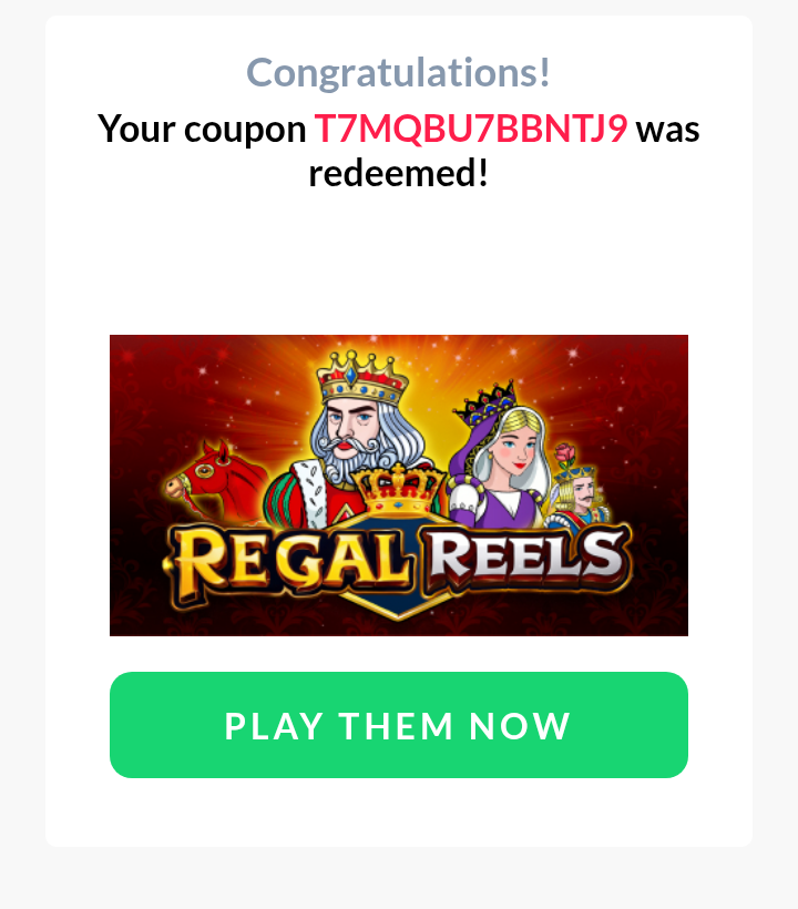 77 FREESPINS On Regal Reels