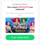 30 FREESPINS no Mermaid RoyaleCÓDIGO: MERMAID30