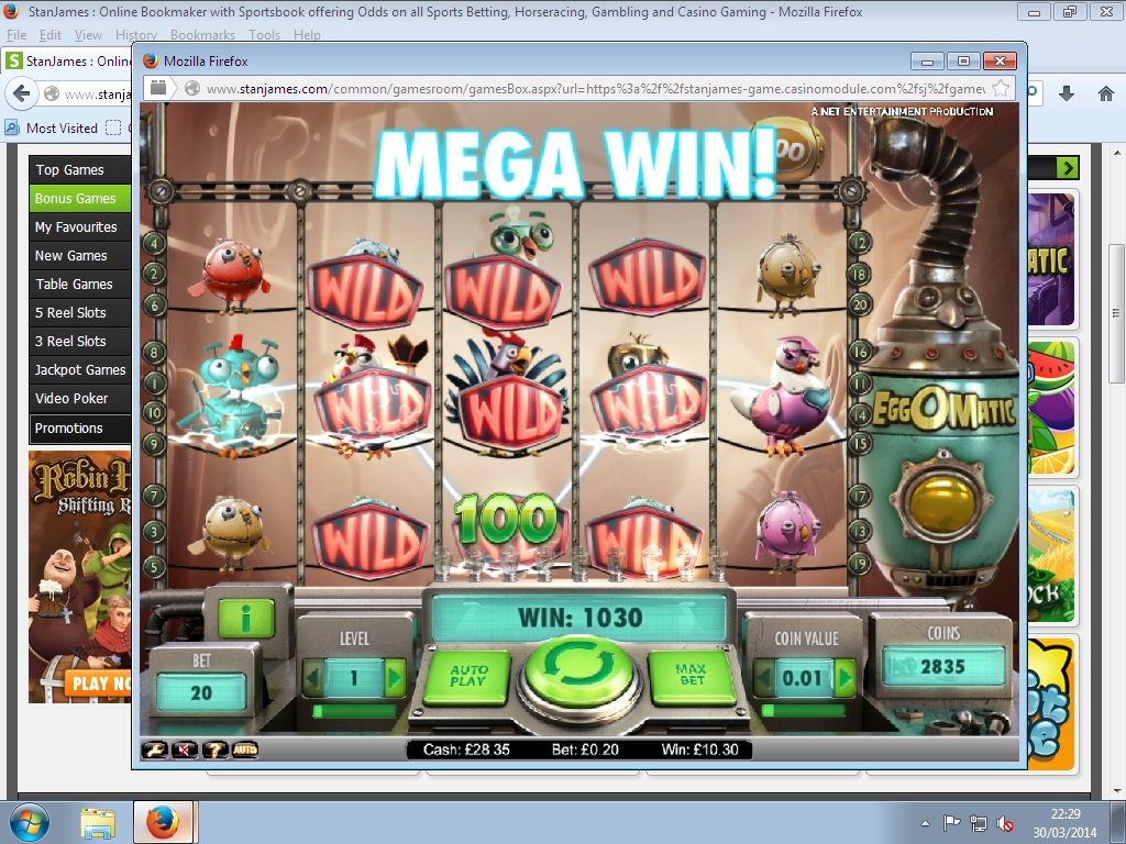 some mixed hits @ stan James from the 3 free spins today really annoying to bust as I got up to just over £50 but just ran real cold on some games then pushed my luck on big bang but on the brightside least I wasn't through the wagering!