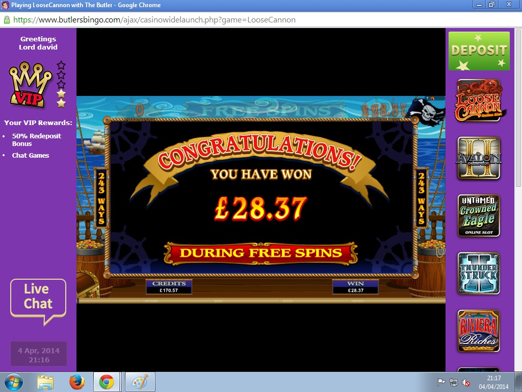 Got 10.20 from my butlers bingo tried a few games with poor results down to 3.50 or so try my old fave retro reels only 3lines built it back up to 10.33! Then nada on avalon this time so tried centre court..one of the best decisions I've ever made! Then back on avalon to get feature it re-triggered followed by avalon 2, immortal romance, loose cannon, untamed crowned eagle and finally a little shot on starlight kiss! With the 243 ways ones free spins/bonuses came up really fast! Here's my winning pics from today! Total withdrawal £173.89