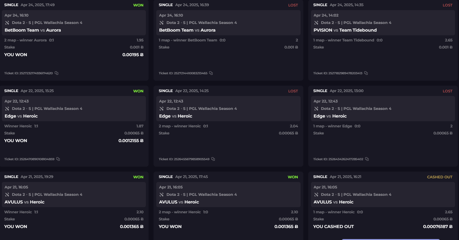 I have no issue providing my betting history at betpanda if you want me to. I bet on Dota 2 esports, moneyline, highest tier of competition.